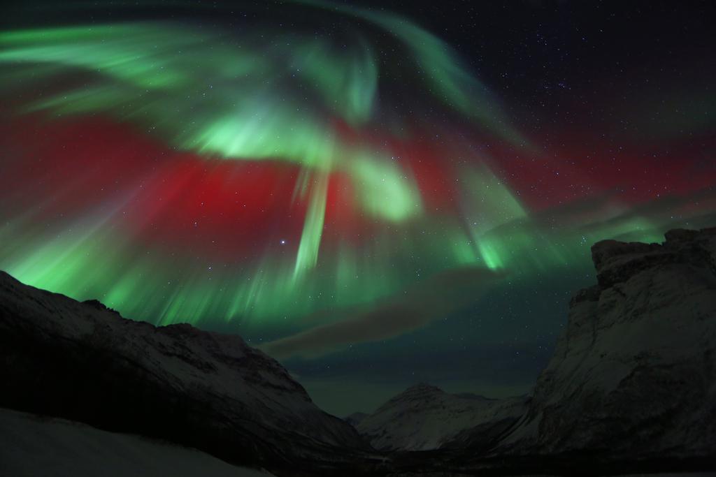 RT @astrofotografen: @BadAstronomer Here are some pink aurora next to the pink clouds. Shot during the same night.