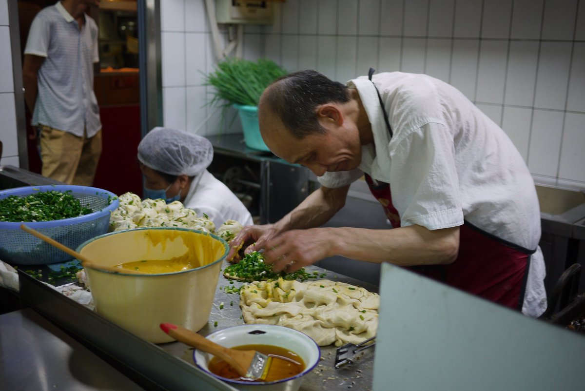 我们上海也是有葱油饼之神的,人气气质都不输日本职人哟。 P.s. 队太长,没吃。