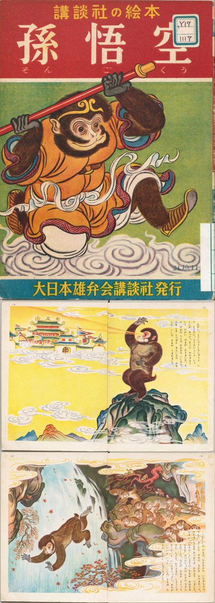 RT @shugeorg: 此童书《孙悟空》由宇野浩二译文,本田庄太郎绘制。此绘本描述了孙悟空从出世、学艺、大闹天宫、到被镇压在五指山(西游记前七回)。此书为日本讲谈社于1949年出版。介绍下载: