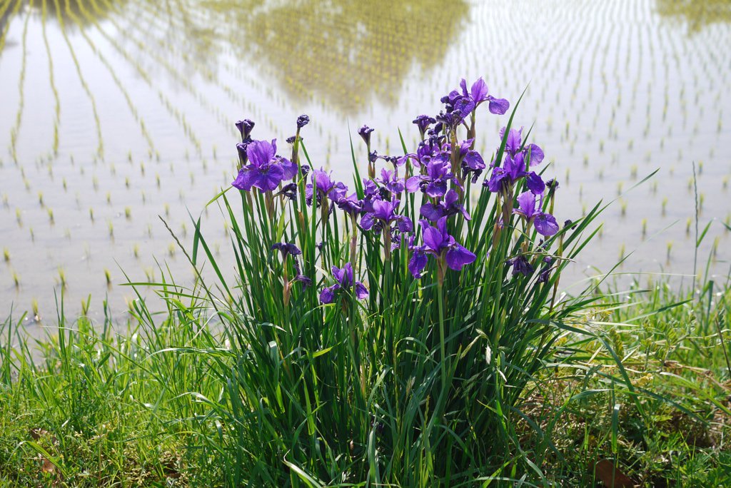 水稻田边的燕子花(Japanese Iris) 和山间的野生紫藤 #