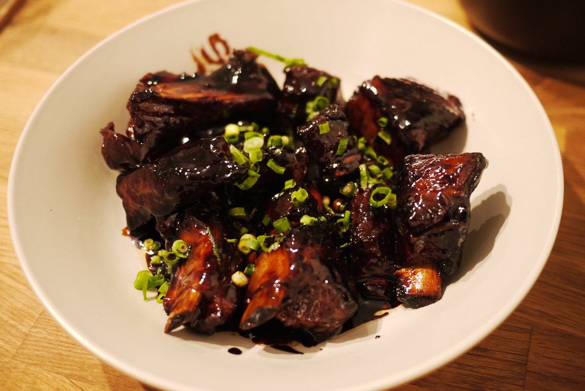 来东京以后天天洗盘子当虾仁牌洗碗机,今天终于有机会下厨!浓油赤酱什么的,叫乡愁。本菜英文名叫 Shanghai Caramel Pork Rib…