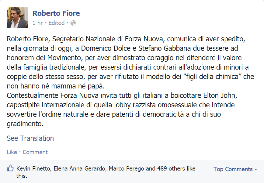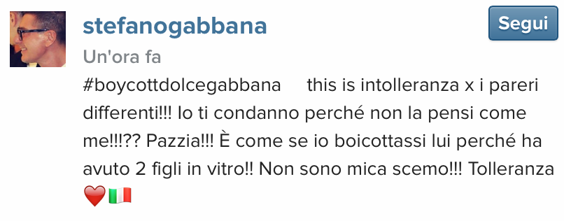 Ci sono state nuove gustose adesioni di vips internazionali al D&G vaffanculo? Ditemi di sì.