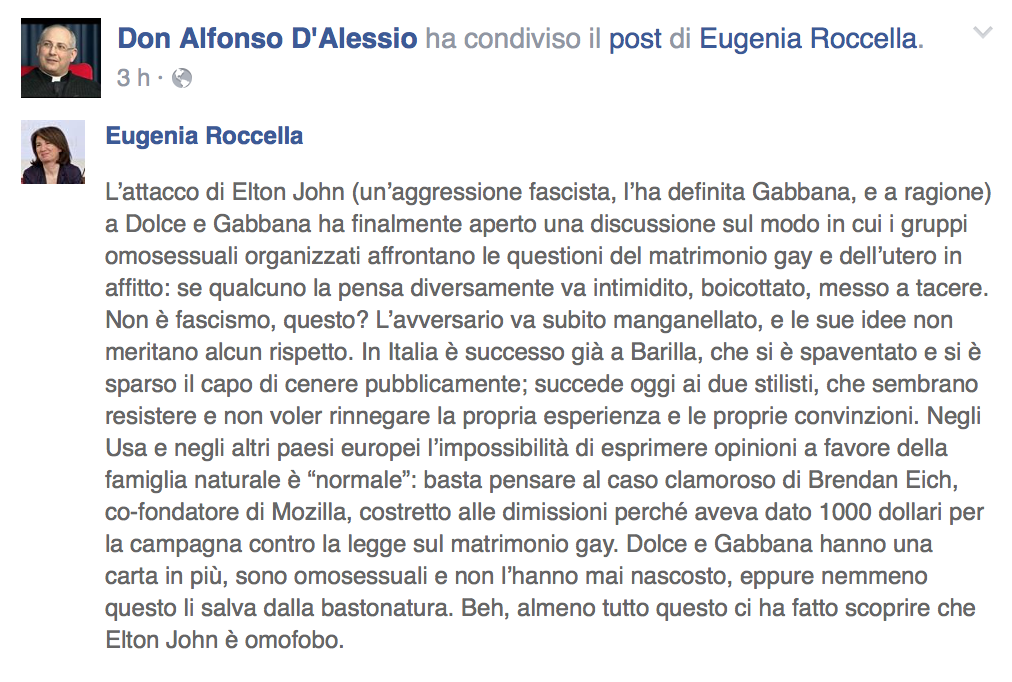RT @idrossido: I cattolici: «Elton John impari da chi ha scelto il suo stesso orientamento sessuale» Loro non devono imparare mai? http://gayburg.blogspot.com/2015...