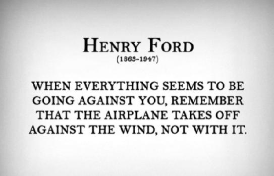 RT @mkl: …remember that the airplane takes off against the wind, not with it. ― Henry Ford