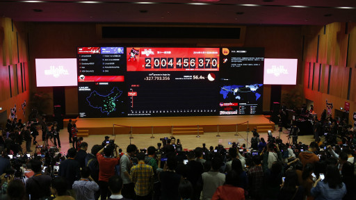 "阿里巴巴旗下的中国最大网络电商"天猫"的数据显示,在网购活动开始的40分钟时间内,销售额突破了100亿元,而去年,冲到100亿用了5小时49分。" via 中国"双十一"购物狂欢节再创纪录 - BBC Chinese