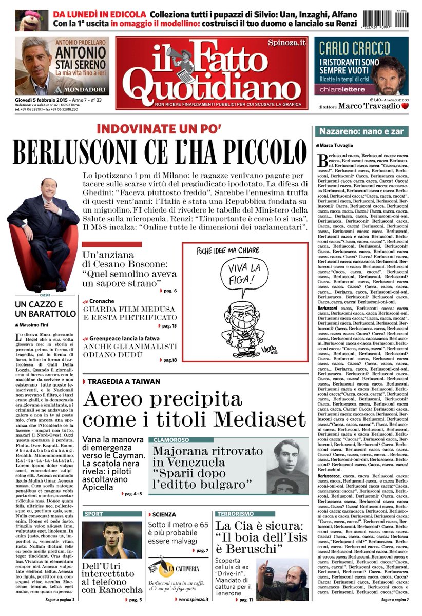RT @spinozait: Marco Travaglio è il nuovo direttore del Fatto Quotidiano: questa la prima pagina del nuovo corso del giornale