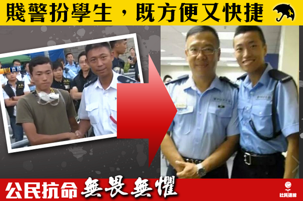 RT @liuyun1989: 社會民主連線:今日下午特首辦門外,突然有數人聲稱經過討論,以「釋出善意」為理由,同意撤離現場,開放龍和道入口予車輛出入。主張撤離的「示威者」還與警方握手拍照,彷彿警民關係十分融洽。誰不知被高登網友神速發現該名「學生」為警務人員。
