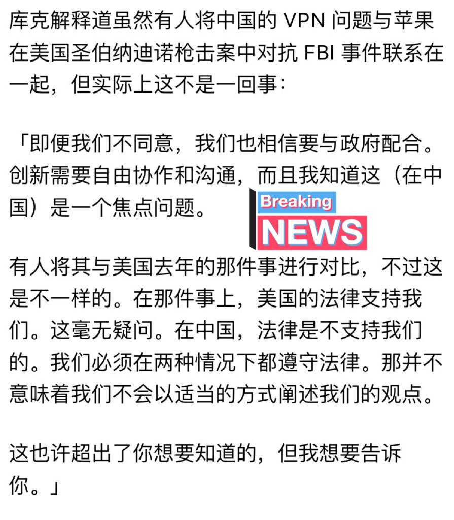 RT @nAODI: 8月2日,库克在 Q3 财报电话会议上,回应了关于「苹果中国店大规模下架 VPN 相关应用」的问题。
