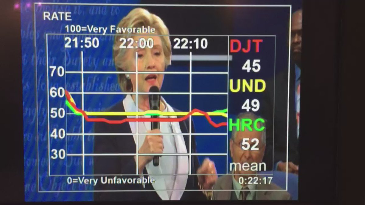 RT @FrankLuntz: Who had the greater positive impact on your voting choice tonight? • 21 say Trump • 9 say Clinton #