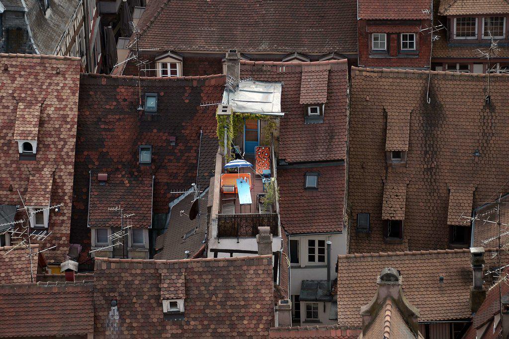 法国斯特拉斯堡,众多房顶中的一处天台。