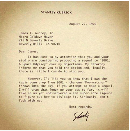 RT @arthurascii: Have a feisty Monday. Here’s Stanely Kubrick in fine form to inspire you.