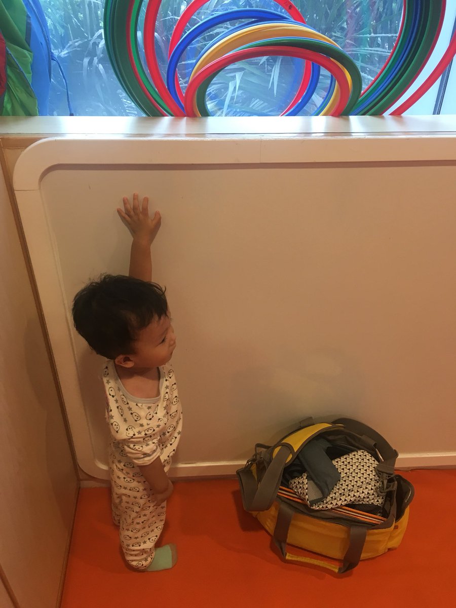 通常我儿子都是幼教班里最不听话的那个,不是撒泼耍赖那种,而是若无其事自行其是。图中此时课室里的大人小孩都在老师带领下载歌载舞,他就是要玩圈圈。当然这也是我浇灌出来的本事,虽然是很对不起幼教班老师……拜托其他同学再卖力点配合老师吧